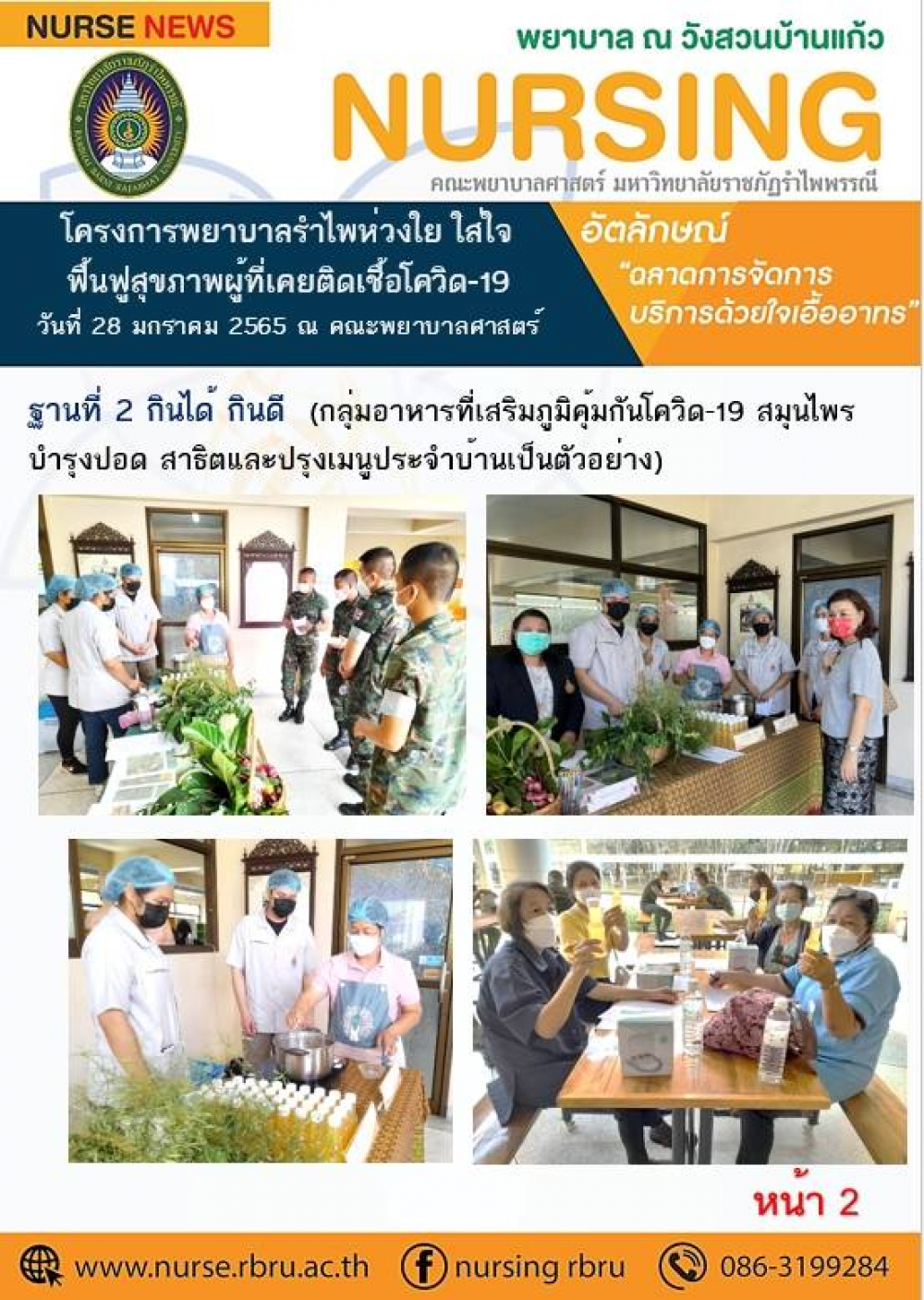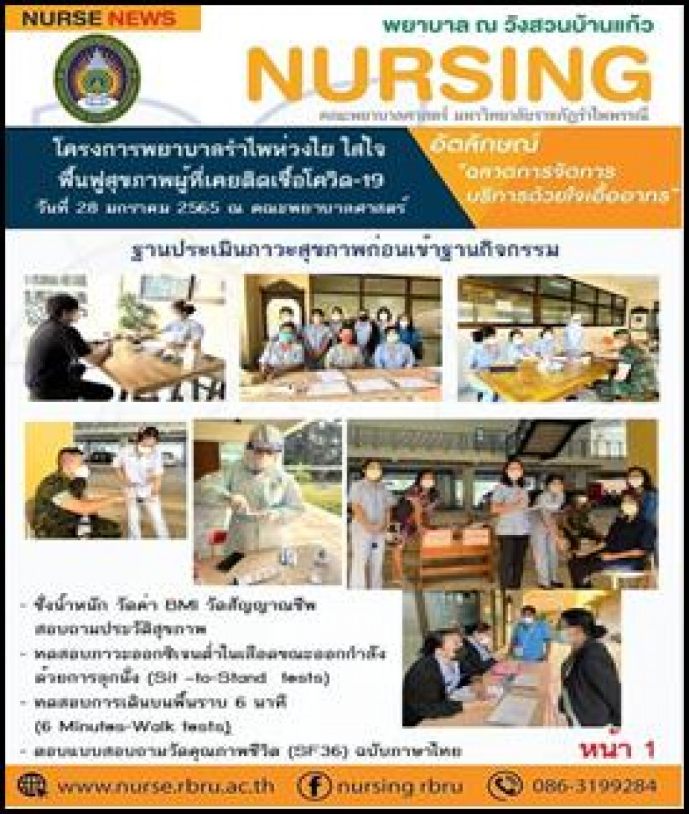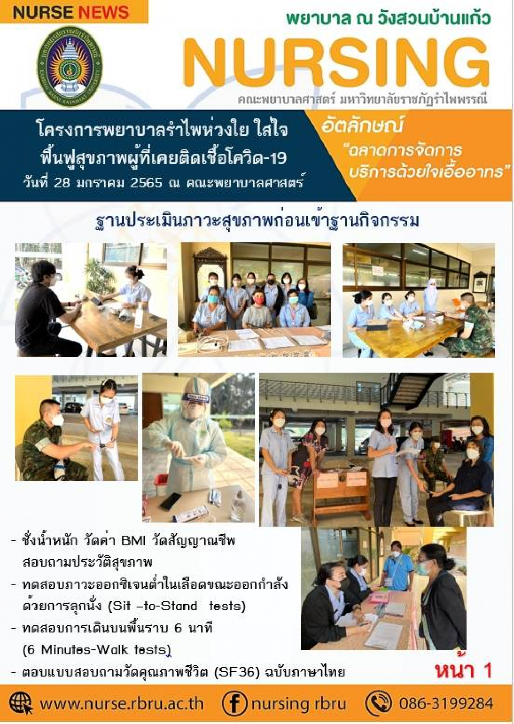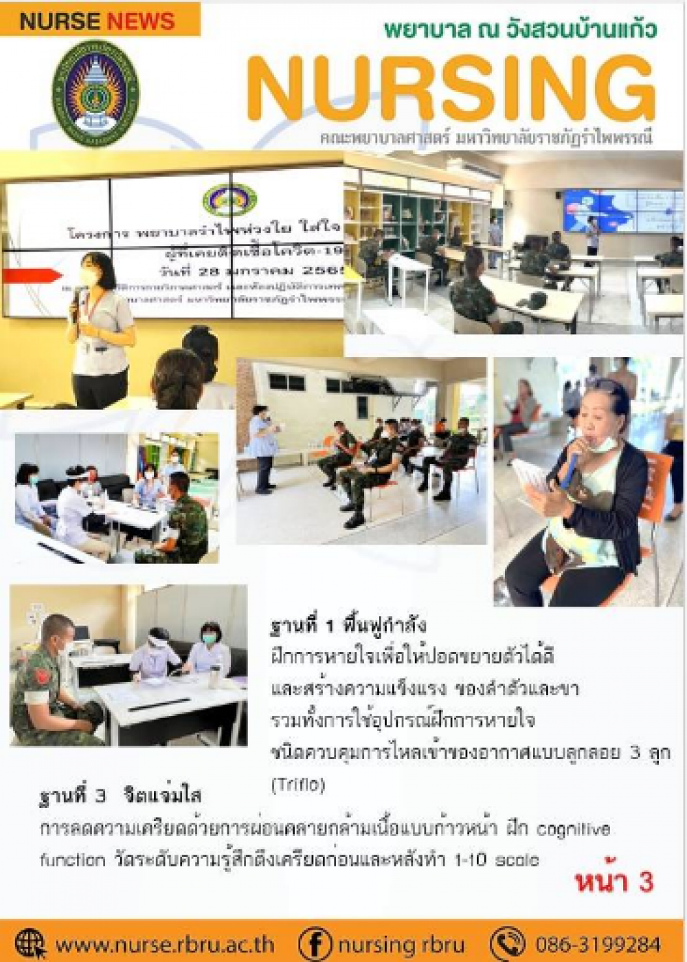 - กิจกรรมฟื้นฟูสุขภาพ 3 ด้าน คือ ด้านการออกกำลังกาย ด้านโภชนาการ และด้านการจัดการความเครียด (รูปแบบปกติ และ/หรือออนไลน์)