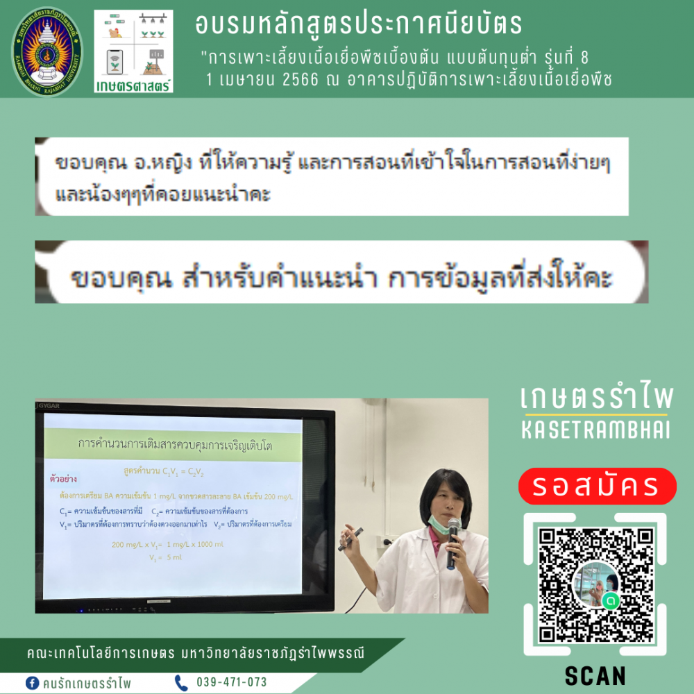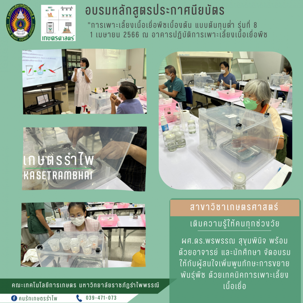 หลักสูตร "การเพาะเลี้ยงเนื้อเยือพืชเบื้องต้น แบบต้นทุนต่ำ"