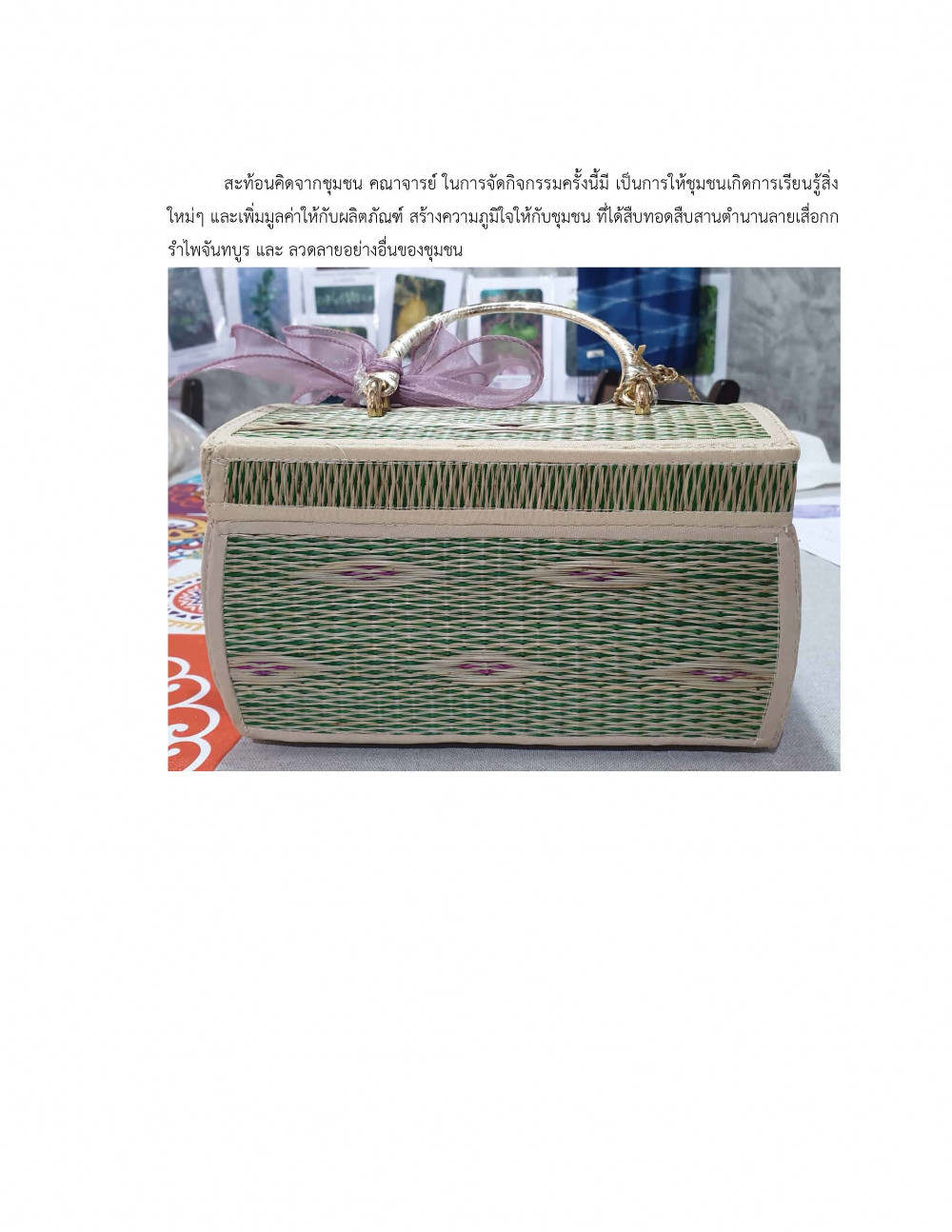 เกี่ยวกับการสร้างสรรค์ผลิตภัณฑ์พื้นบ้าน กรณีศึกษางานทอเสื่อกกและงานจักสานด้วยคลุ้มในจังหวัดจันทบุรี และได้มี