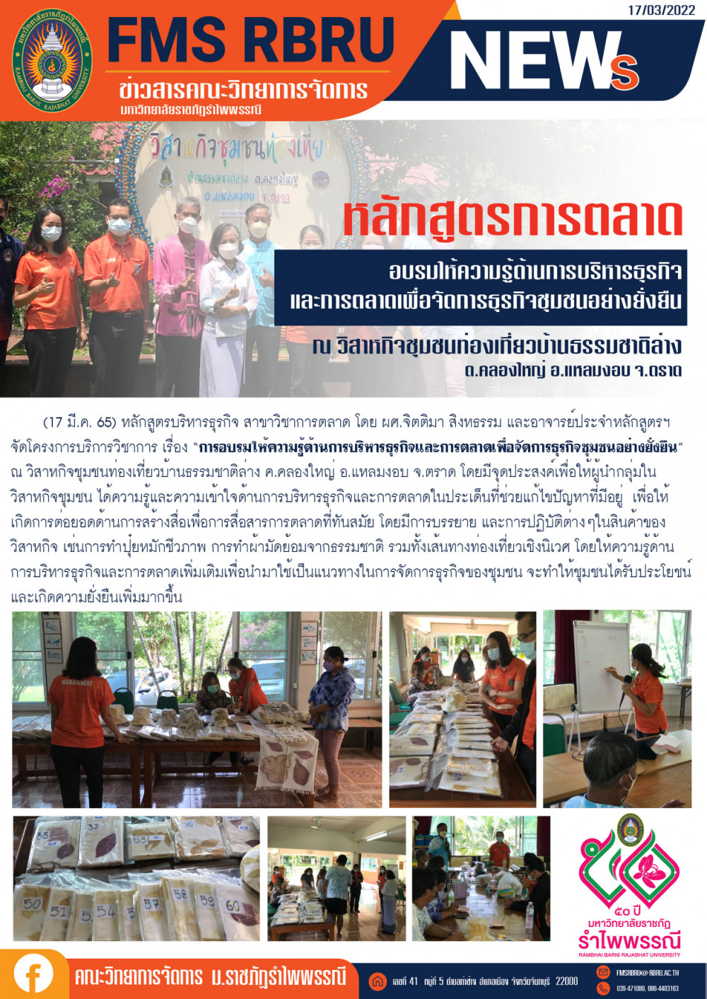 อบรมให้ความรู้ด้านการบริหารธุรกิจ และการตลาดเพื่อจัดการธุรกิจชุมชนอย่างยั่งยืน